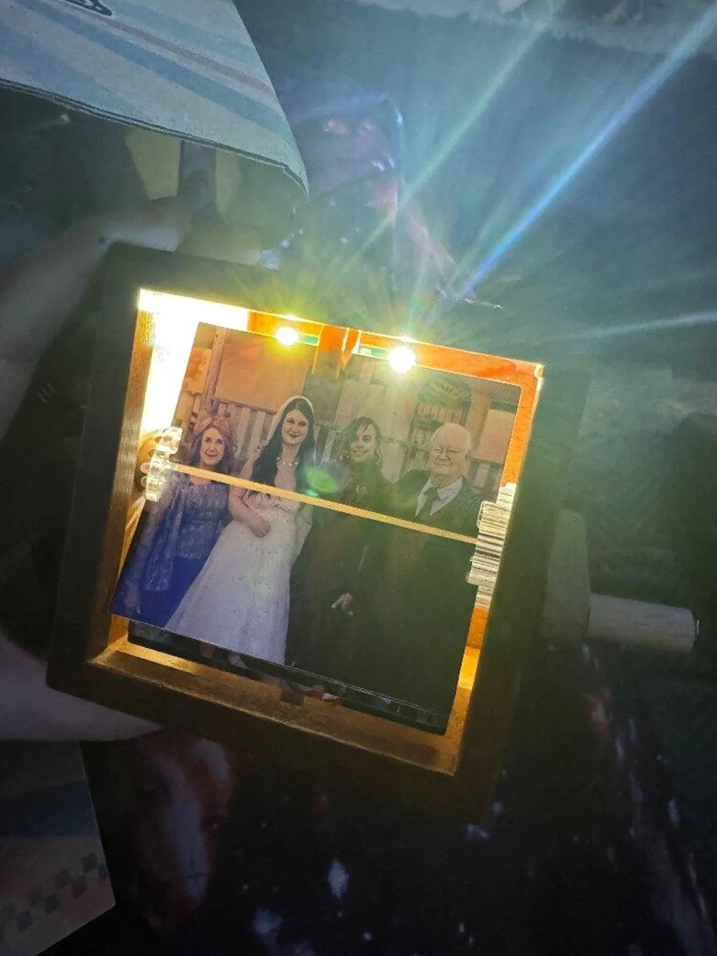 Turn the hand crank and watch your memories dance under soft glowing lights — a perfect blend of nostalgia and craftsmanship.